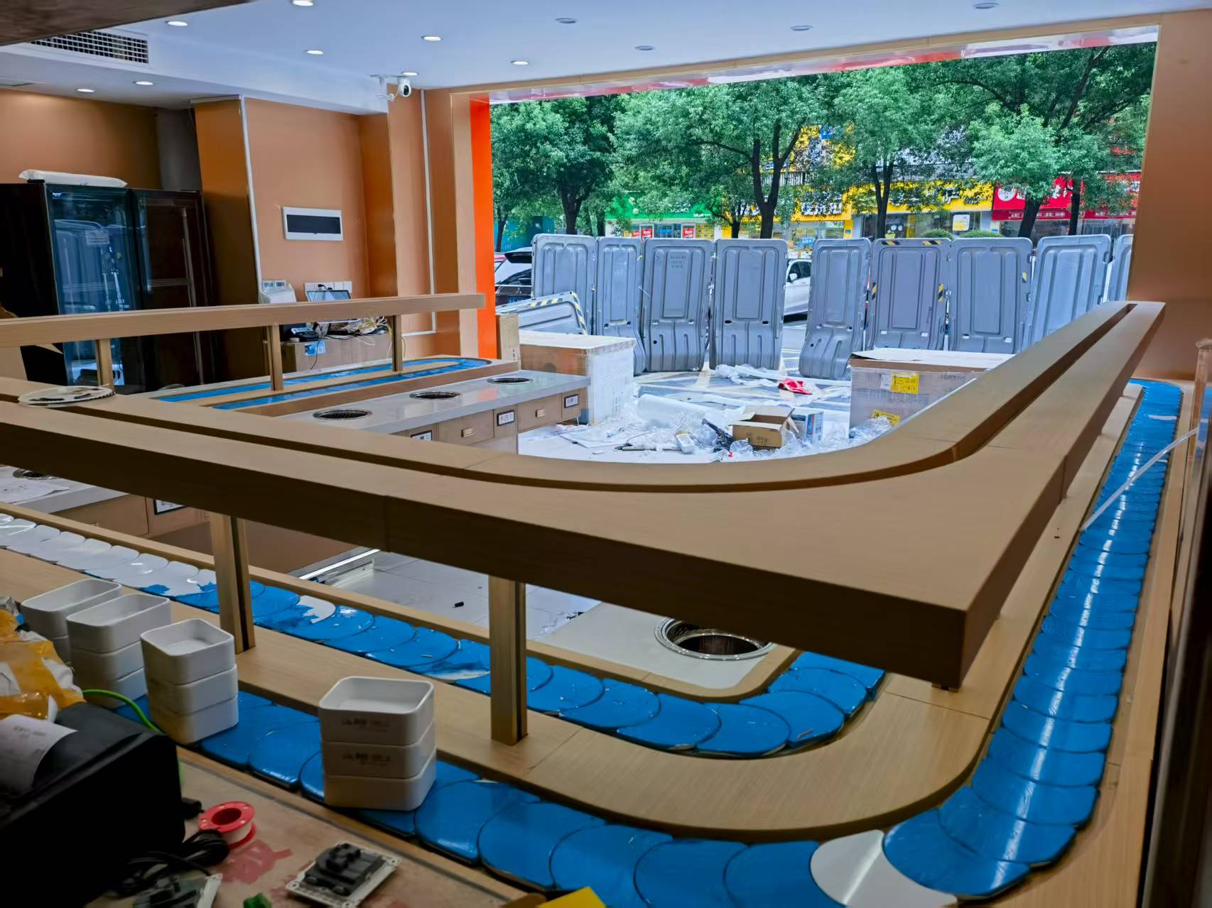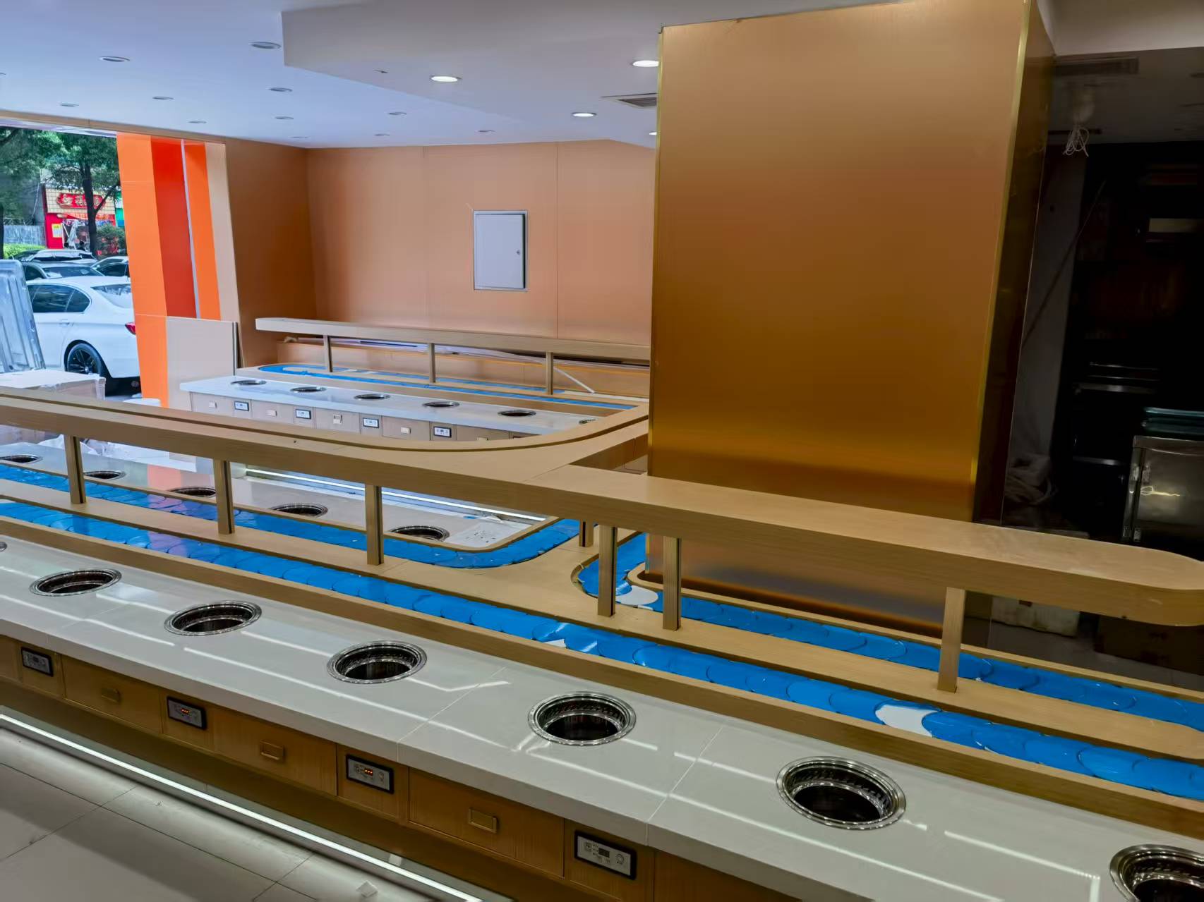 回转设备的走向设计是落地安装的基础,需依据店面平面图,由专业设计师提供 1 对 1 定制服务,遵循餐厅动线原理,确保餐位间距合理、流转高效,以保障翻台率。同时,应开辟专用出餐口,让回转设备直接连通后厨,方便快速上菜。