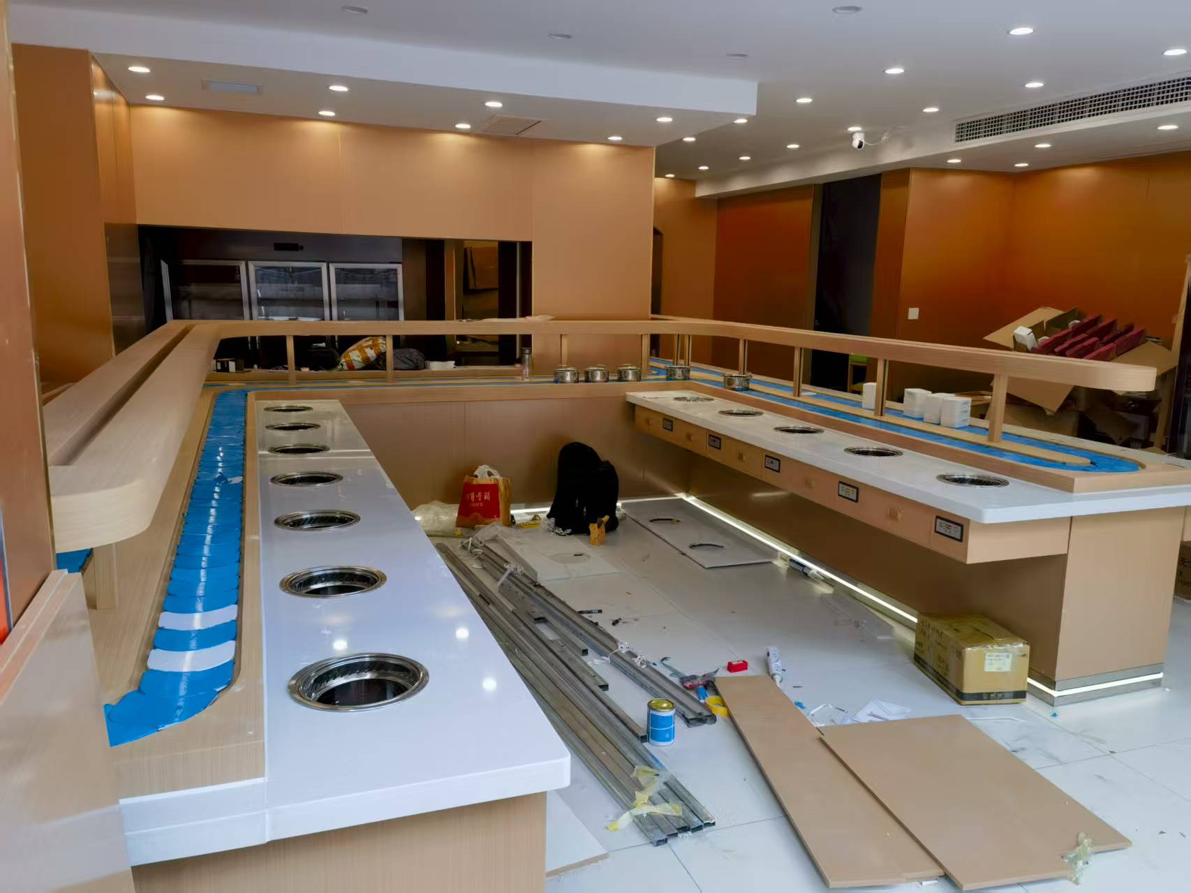 材质的选择主要聚焦于台面与叶片链条。台面以理石为佳,其耐热性强且质地坚固,拼接处需做到无缝处理,理石胶涂抹均匀平整,不仅安全系数高,颜色与花纹还可根据需求指定,能精准适配不同的店面风格与设备定制需求。
