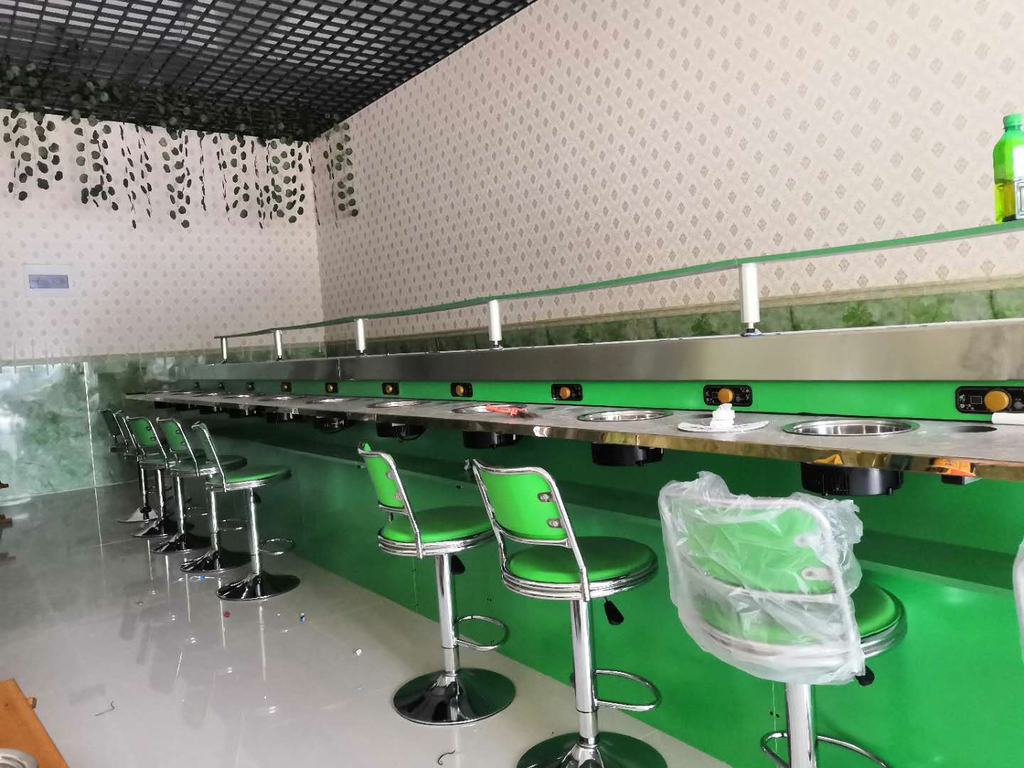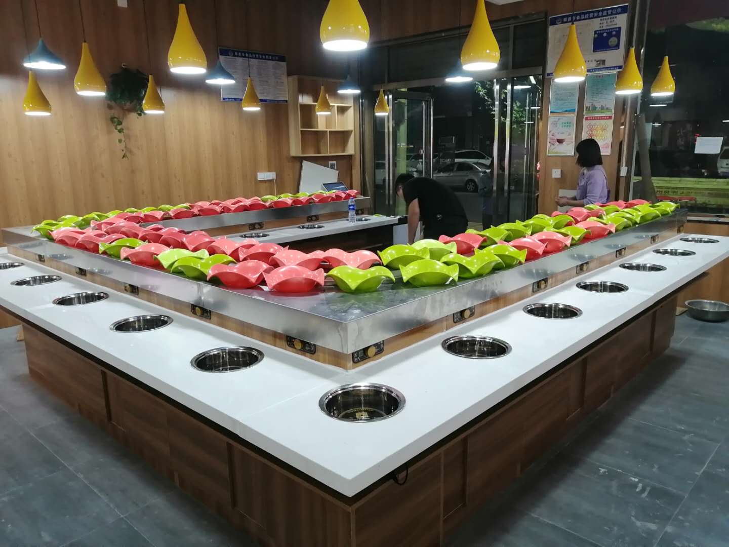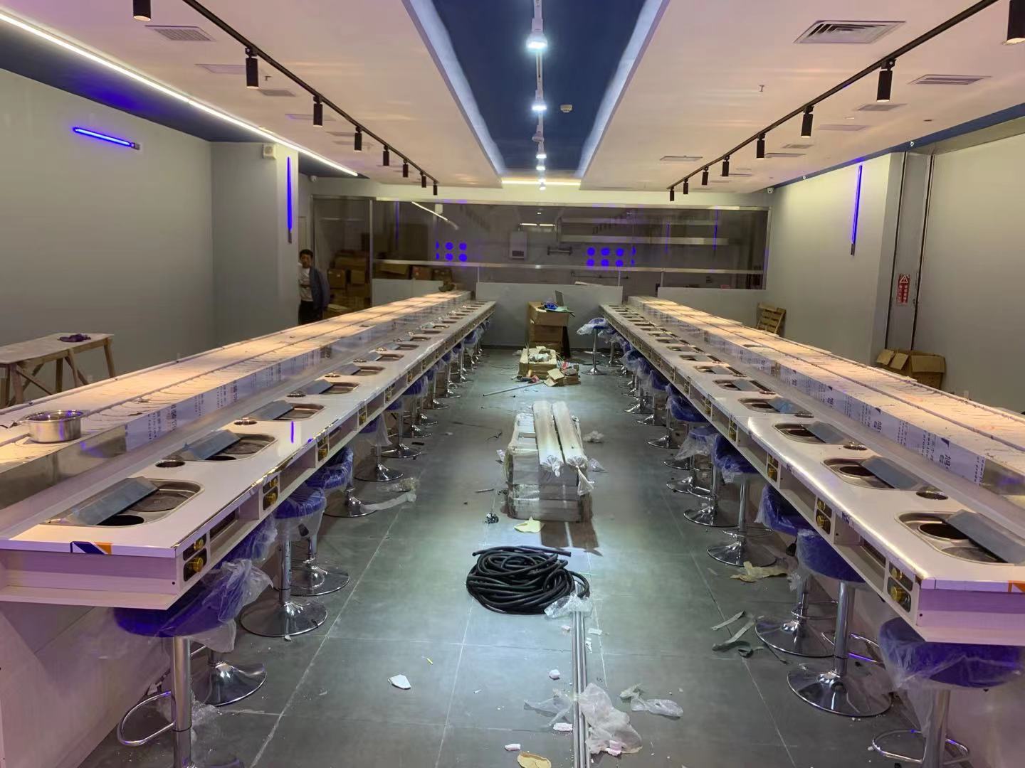 开一家旋转火锅店店内应该怎样布局呢?应该尽量使用每一处空间,在人员活动线路上应该尽量选取直线,避免迂回的曲线,使顾客和工作人员在第一时刻抵达想要抵达的位置,其次,主要通道的宽度要显着大于非必须通道。