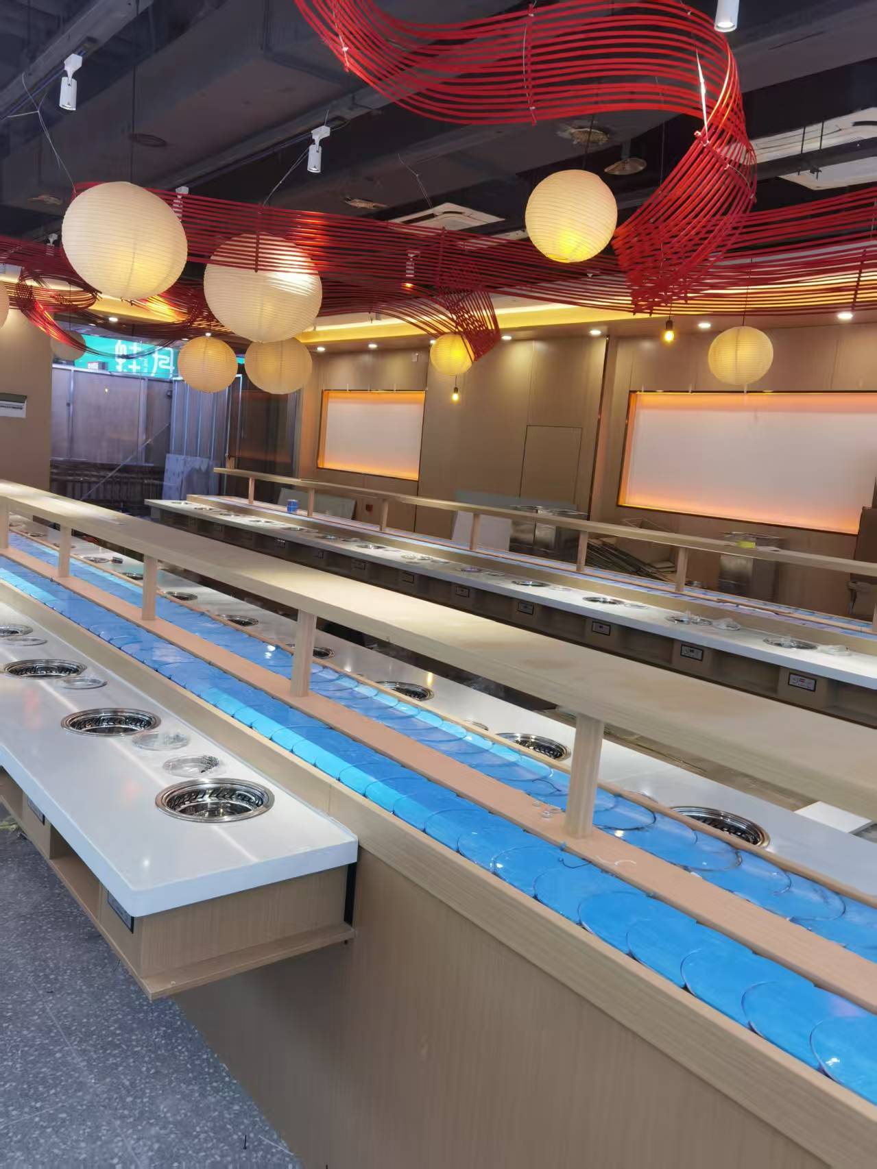 提升运营效率 旋转火锅设备通过自动化传送系统,大大减少了服务人员的工作量。传统火锅店需要大量服务员来回传递食材,而旋转设备则能实现食材的自动配送,让服务员可以更专注于顾客的其他需求。这种运营模式的转变,使得餐厅能够在保持服务质量的同时,有效控制人力成本。