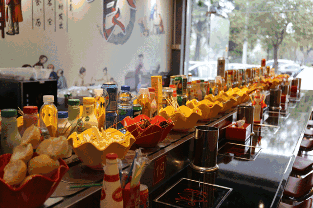 第三家开业时间最早、生意也是最好旋转小火锅店,老板是一个年轻小伙子,店面不大大概在30平方,20个座位,旋转小火锅店里面大概有100多种菜品,20多种饮料,底料蘸料一起有30多种,蘸料是免费吃的,签字是一元一签的。