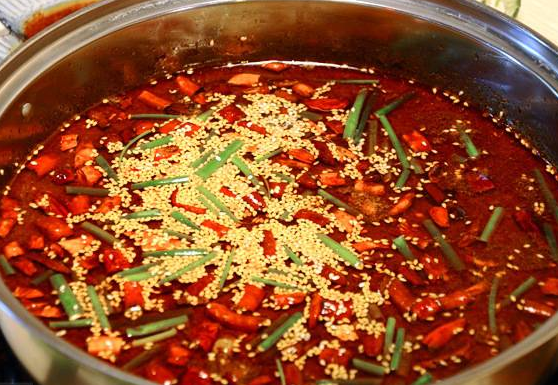 在准备火锅汤时,如果你想做一个稍微辛辣的味道,干辣椒不应该直接放进锅里,取而代之的是,用沸水将其烫一下,然后取出,洒在火锅里。大批量油炸法和小批量油炸法之间存在一些差异。对于小批量油炸,应将香料搅拌成粉末,并减少用量。同时,应适当缩短香料的煎炸时间。