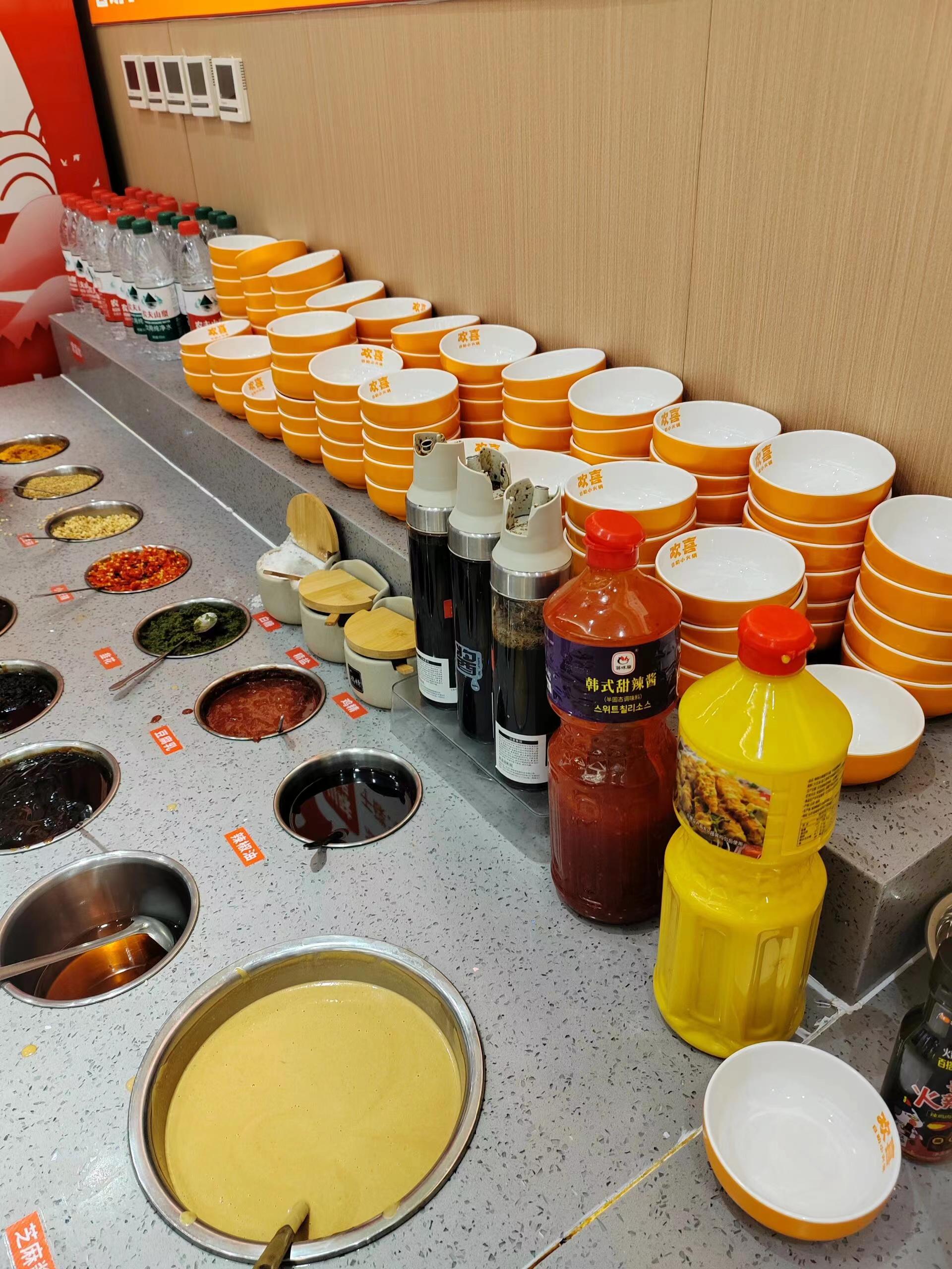 多功能中岛设计:中岛作为实用型配置已被广泛应用,其功能多元且灵活:既能自然遮挡对面餐位视线,提升用餐私密性;又可在表面张贴菜品名牌,方便顾客直观了解食材信息;还能作为餐具架、饮料架使用,最大化利用空间的同时增强设备的实用性。